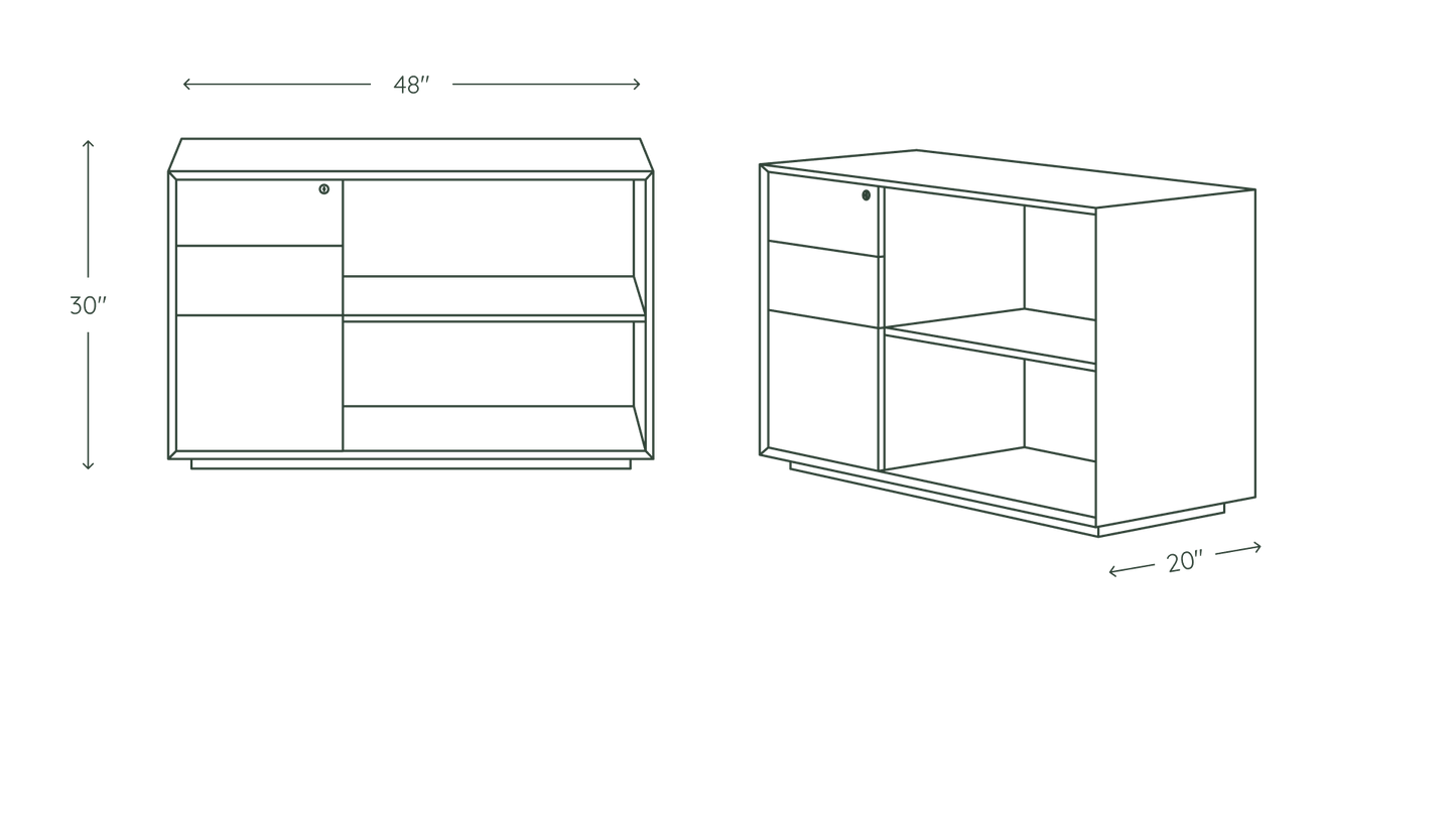 Available in a variety of finishes, with the storage cabinet oriented toward either the left or right side. Can pair with our Standing Desk or Office Desk to form an executive L-Desk.