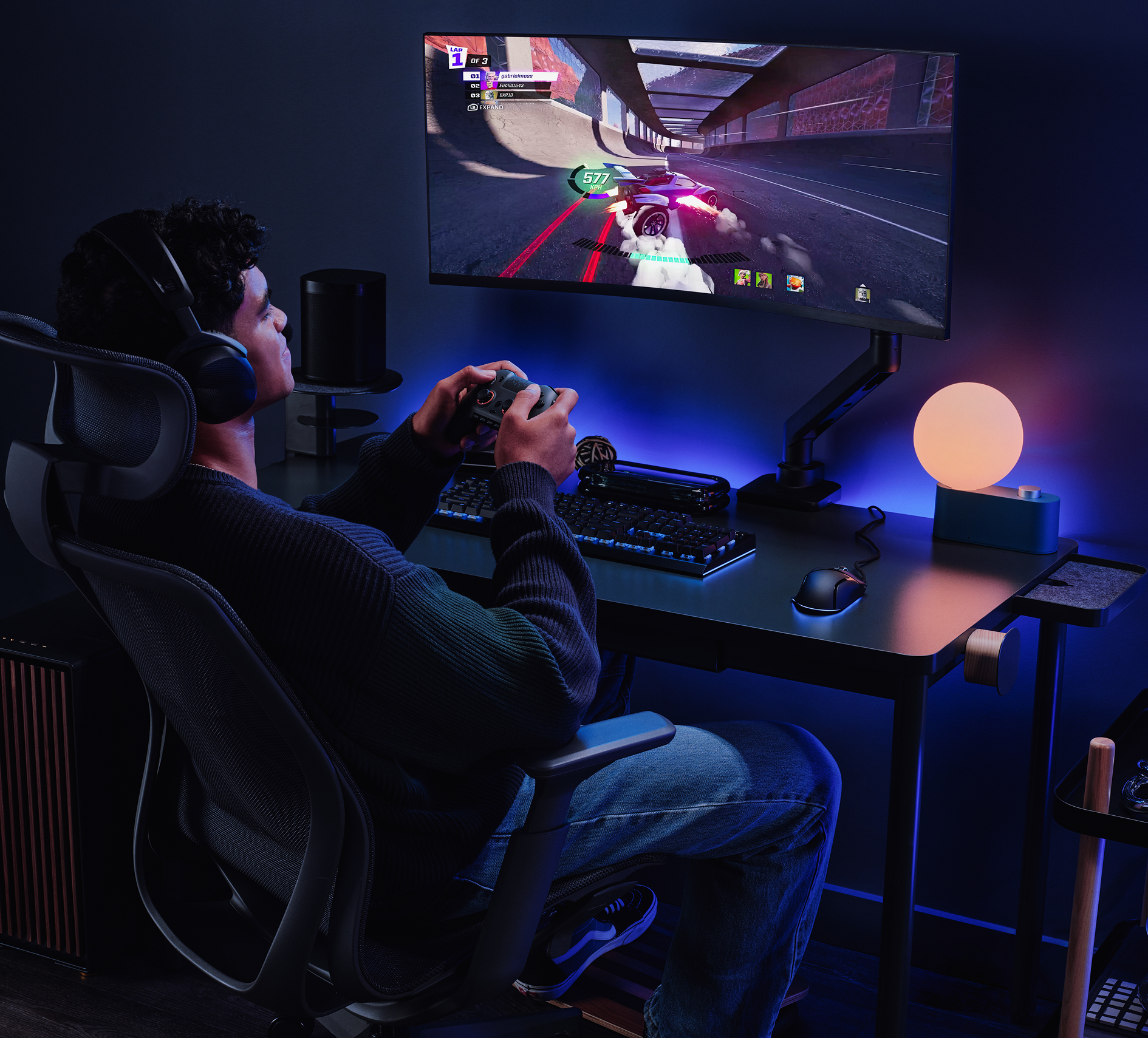 An ergonomic setup keeps gamers in fighting shape: a supportive chair encourages a neutral spine through long sessions, while a height-adjustable desk makes it easy to switch positions to stay sharp deep into the night. With accessories that fine-tune wrist and screen alignment, this setup doesn’t just look pro—it performs like it. Comfort becomes a competitive advantage, so the only thing you’re losing is respawn time.