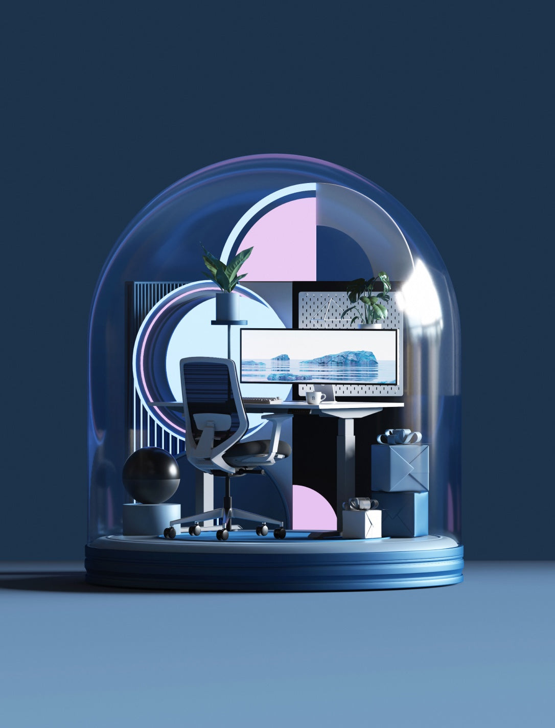 We partnered with digital artist Peter Tarka to bring this holiday campaign to life. We wanted to work with someone that could capture the various ways to create an inspiring workspace with Branch products, while channeling some playfulness and holiday magic.
