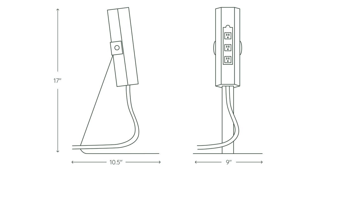 The powder coated steel construction keeps it warm and durable while supporting a classic white ash power block. Its freestanding design provides elevated power with a 45° angle plug for connecting in confined spaces.