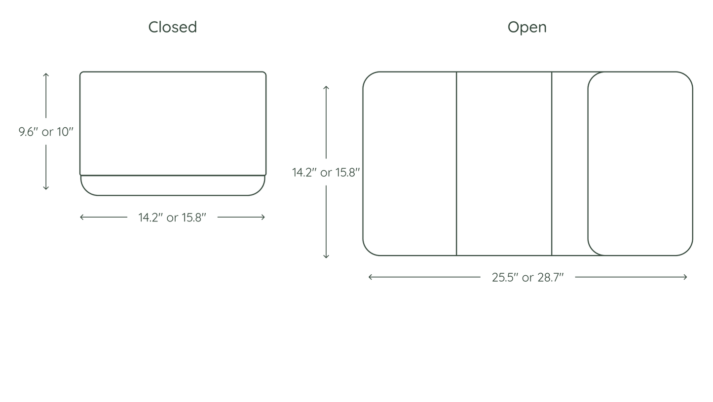 General DimensionsMedium: 14.2” x 9.6” | Large: 15.8” x 10”