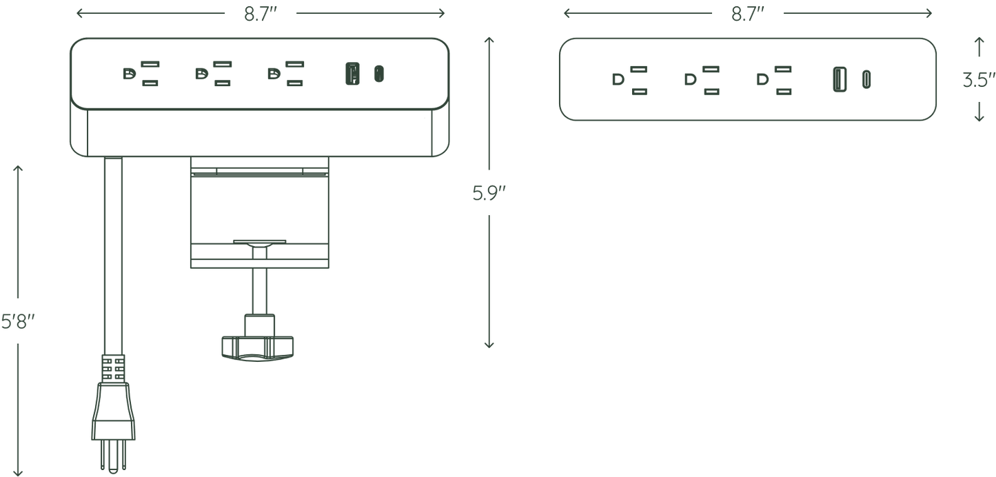 Add Clamp-On Power to any desk for a sleek and simple charging experience. This UL Certified power accessory includes three outlets, one USB-B port, and one USB-C port, and comes in two classic colors to complement most setups.