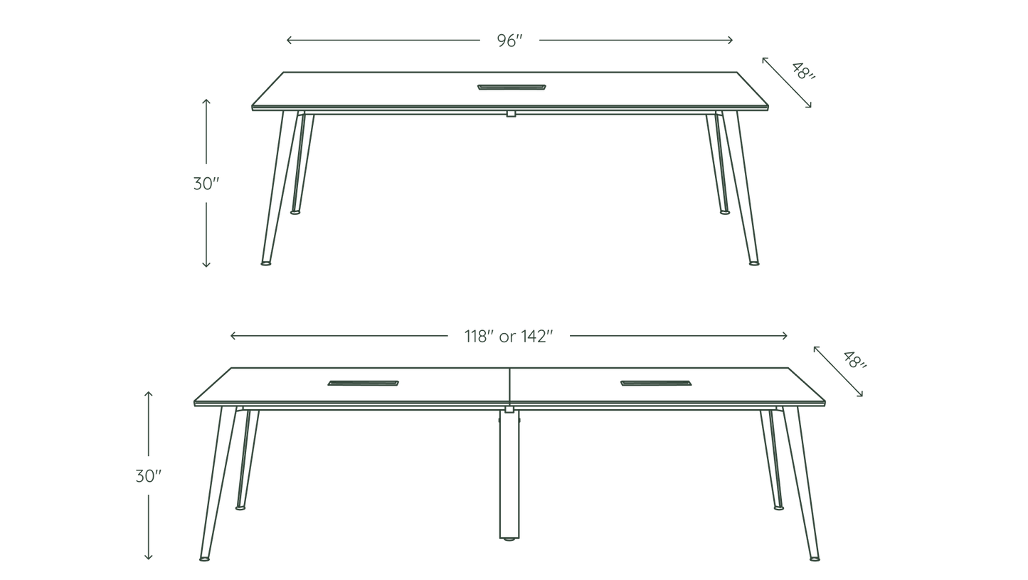 General Dimensions96" x 48" (for 6-8 people) | 118" x 48" (for 8-10 people) | 142" x 48" (for 10-12 people)