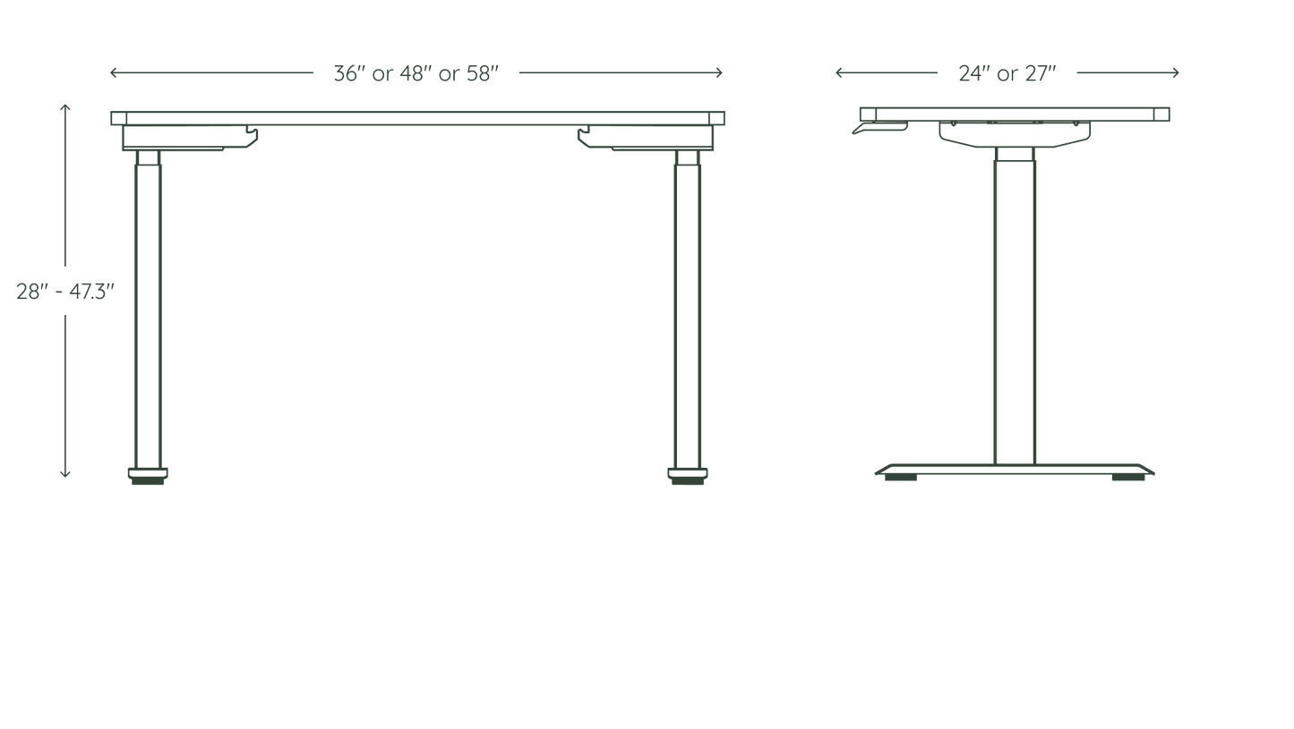 - 36 x 24: 36" W x 24" D x 28 - 47.3” H