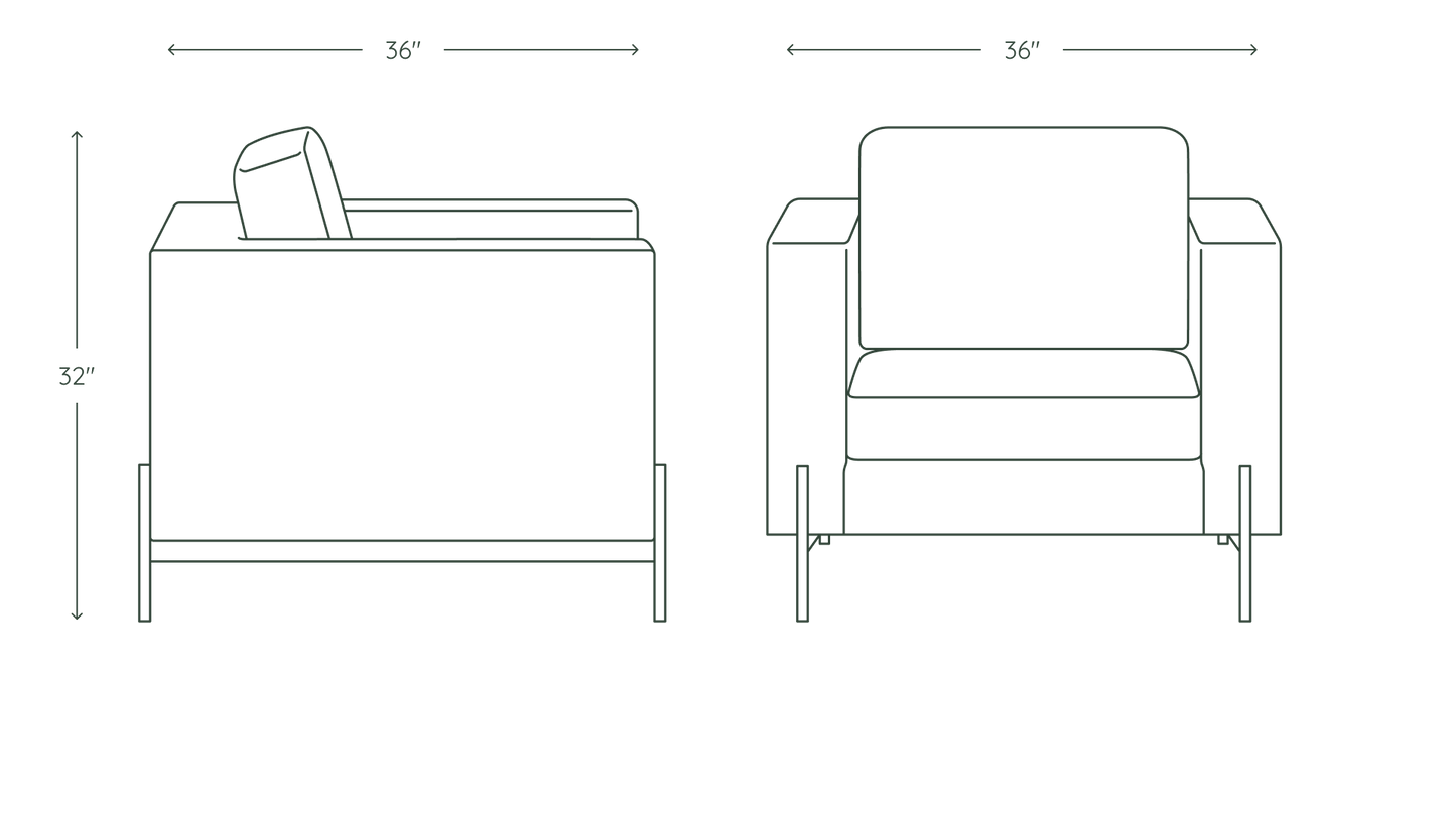 Featuring tailored arms, a high-density foam cushion, and reinforced joints, the Lounge Chair is a comfortable companion to any living area or office space. Designed and manufactured in California with contract-grade materials to withstand years of use, it'll quickly become the most sought after seat in your space (which is why we recommend them in pairs).