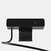 Add Clamp-On Power to any desk for a sleek and simple charging experience. This UL Certified power accessory includes three outlets, one USB-B port, and one USB-C port, and comes in two classic colors to complement most setups.