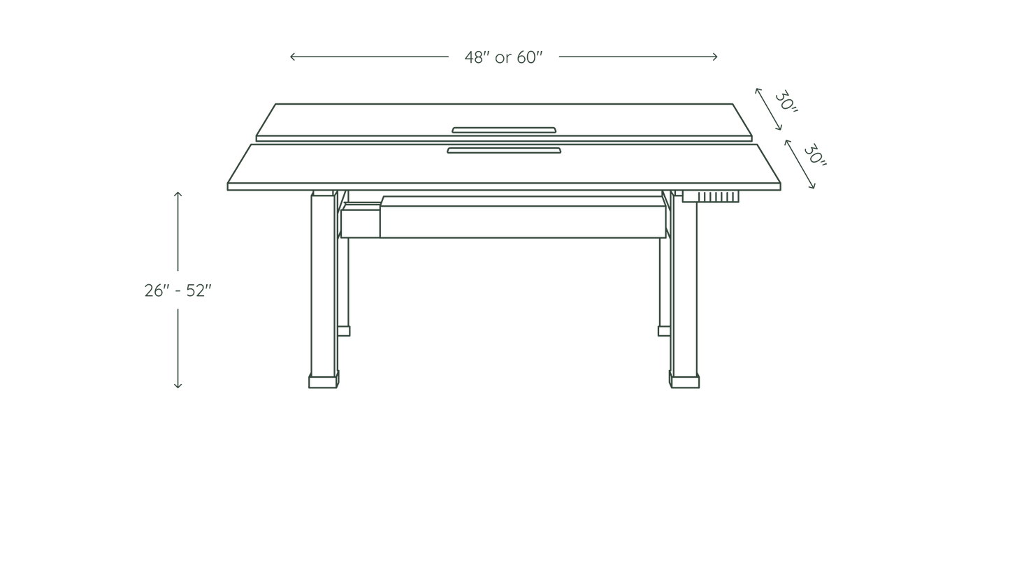 General Dimensions48"W x 30"D x 26"-52"H | 60"W x 30"D x 26"-52"H