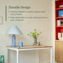 - Handcrafted detail and everyday performance for stylish, work-ready spaces.