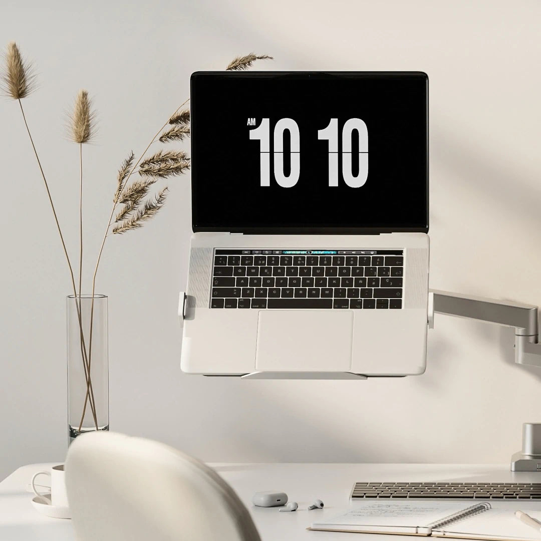 The Laptop Mount extends the flexibility of your workspace by raising your laptop to a comfortable, ergonomic height. Attach it to your Branch Monitor Arm to create an elevated dual-screen setup or simply free up valuable desk space.