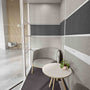 Thoughtfully made in the USA with incredible attention to detail, audio-engineering, and comfort, the Meeting Booth also provides active ventilation, LED lighting, power outlets, and enough space to comfortably fit a meeting space for two.