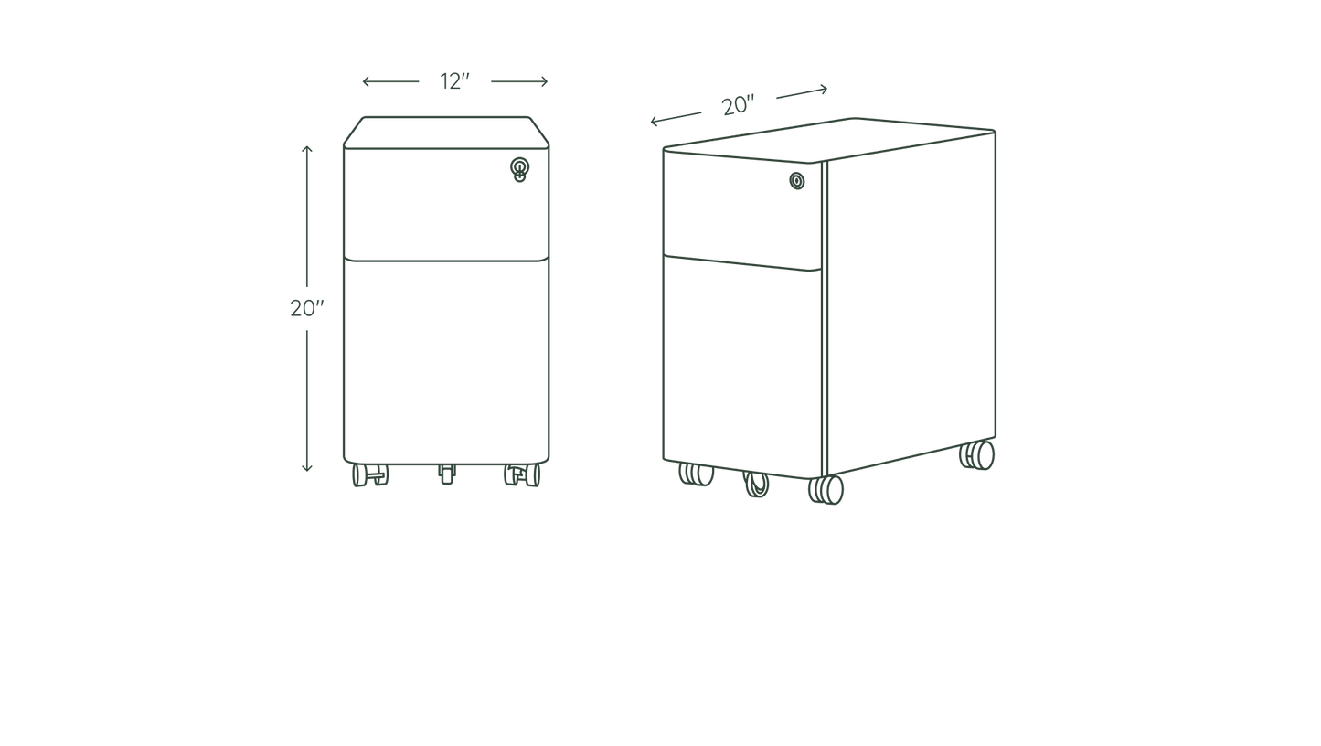 Introducing the Small Filing Cabinet: a space-saving and subtle addition to any home or office. Its streamlined design features an integrated lock and smooth-rolling wheels, making it both practical and stylish. The cabinet includes drawer dividers to ensure your items stay organized, as well as locking drawers for added security. Its compact size accommodates standard hanging folders lengthwise, and the cabinet is constructed from durable coated steel that resists dirt and fingerprints.