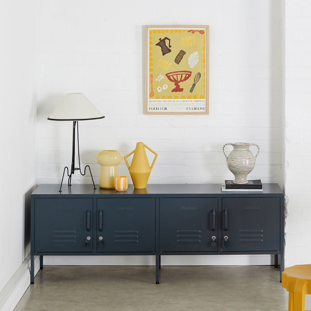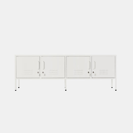Long and lean, the Standard by Mustard Made is the ultimate multitask storage solution. Adjustable shelves (in four parts), four handy hooks (one inside each door), two cable holes, and two wall attachment points make for a console that can store all your essentials and some. Choose between a vibrant array of colors that add a bold pop of personality to any room.