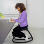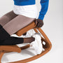 The curved runners of the kneeling chair allow for gentle rocking motions, while the tilted seat enables an open hip angle. This allows the spine to adopt the natural curve it has when we stand upright, also while seated.